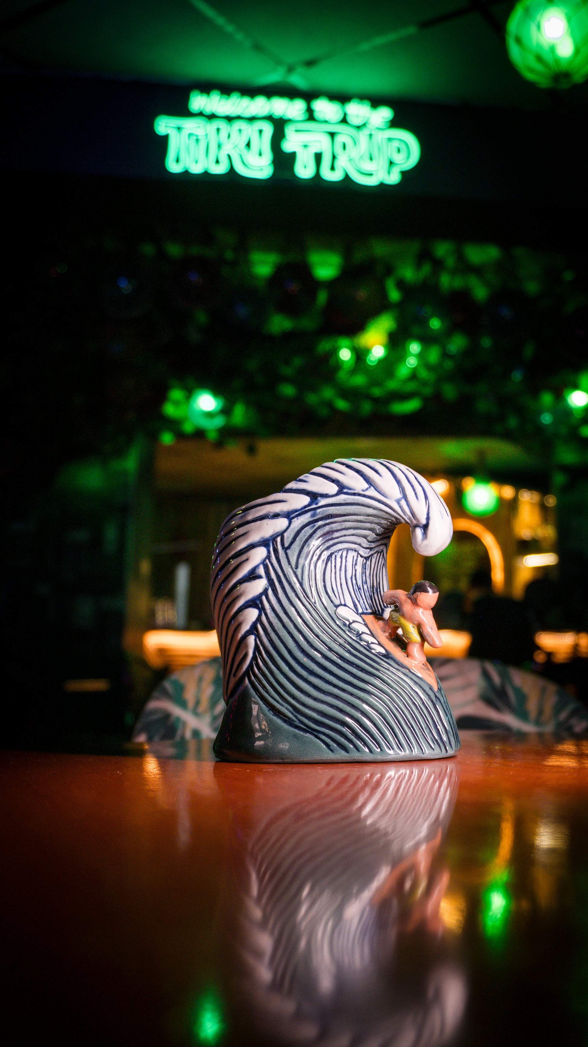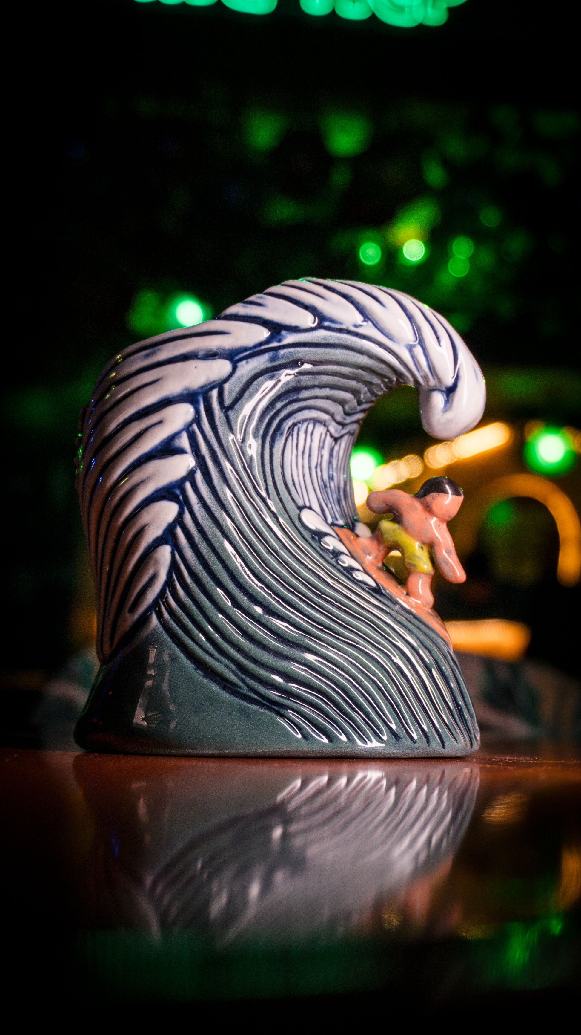 This tiki mug captures the spirit of Punta Hermosa, where the waves rise high and the good vibes never drop. Inspired by our favorite beach and the free soul of surfing, it features a tiny surfer riding beneath the crest — a tribute to those who live each day with joy and sea salt in their soul.
